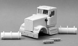 New Cab Conversion KitsAll parts are resin cast unless noted. Resin castings do sometimes contain some small air bubbles. I have tried to keep these to a minimum. Resin may vary in color from time to time. All cast castings are made from my original patterns. Kits were designed for the more experienced modeler with some kit-bashing or scratch building experience. They are basic kits for converting 1/87 scale truck models into a Kenworth truck of your choosing and do not contain detail parts, tires or wheels. This is left up to the individual modeler. THEY ARE NOT INTENDED FOR CHILDREN. - Dennis Aust PLEASE INCLUDE CHECK OR MONEY ORDER WITH ORDER. SORRY NO C.O.D.s