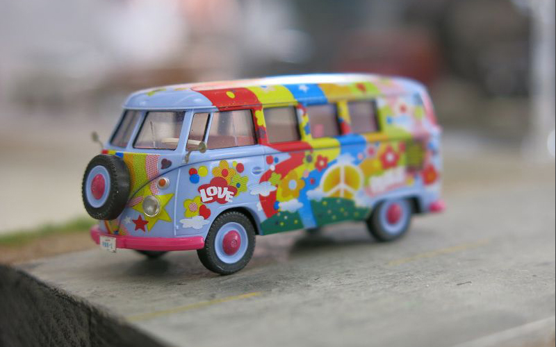 This very neat model of a typical 1960s hippie van was on display at the 2015 Fulda Meet. The van is a Wiking model repainted by Uli Slovig.