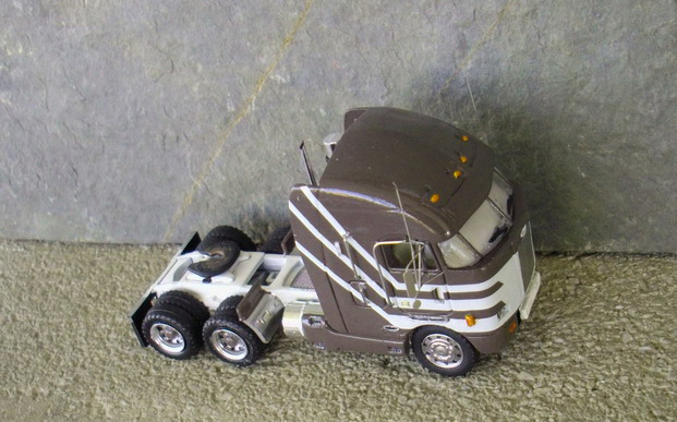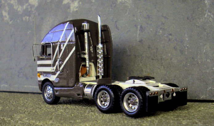 One thing about the short-lived Peterbilt 372, one either loved them or hated the looks of these things! There seemed to be nothing in between. This Peterbilt 372 COE model built by André Giroux was made using his new Peterbilt 372 resin cab kit which captures the personality of this unique cabover. The frame, wheels, and fuel tanks are from Promotex with mirrors from Plano Model Products. André made the decals himself.