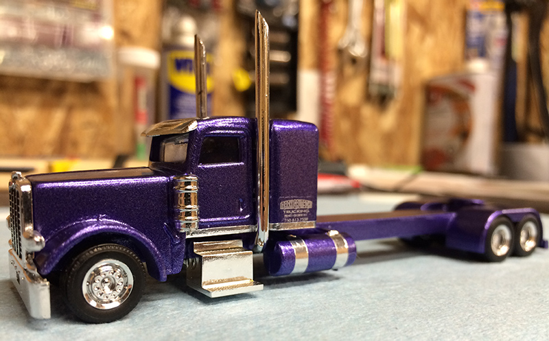 Mark Gautschi stretched and customized a Trucks N' Stuff Peterbilt 389 truck tractor into this very unique model.